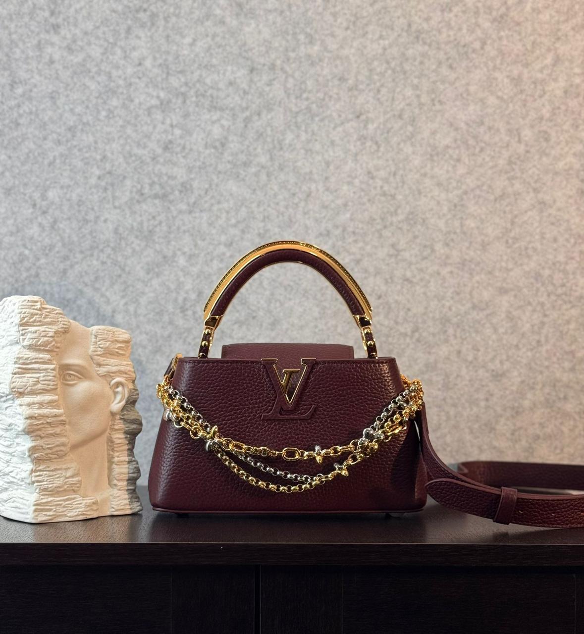 Louis Vuitton Capucines Mini Taurillon Leather Plum with Infinity Chain