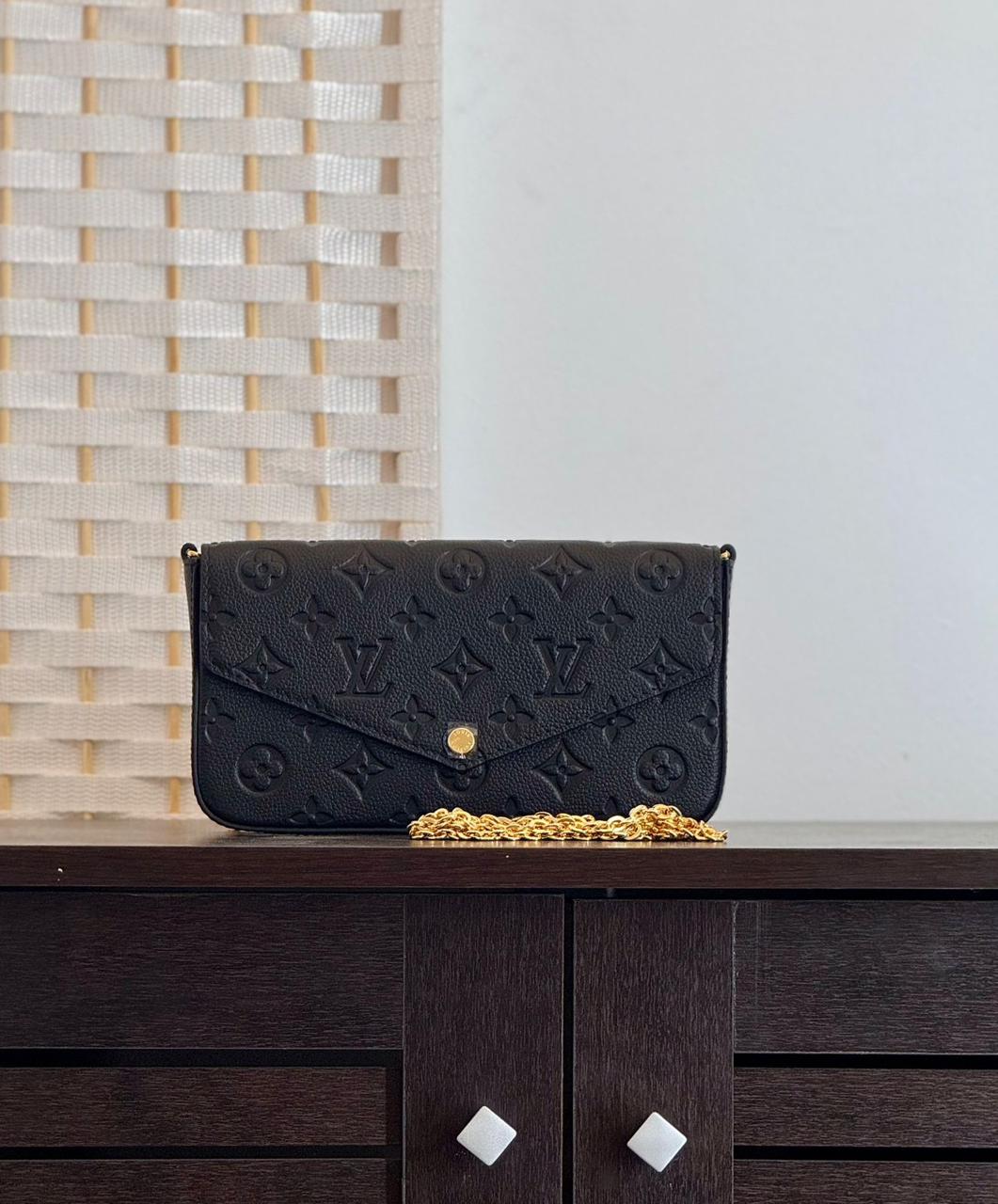 The Louis Vuitton Pochette Félicie is a sophisticated solution for organizing daily essentials with timeless style. Sculpted from luxurious black Monogram Empreinte leather, it is discreetly embossed with the iconic Louis Vuitton Monogram pattern.